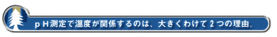 1つは pHを感じ取るセンサの役目をするpHガラス電極が、温度で性質 を変えることによるもの。そしてもう1つは、サンプル(被検液)が温度によって性質を変えることです。