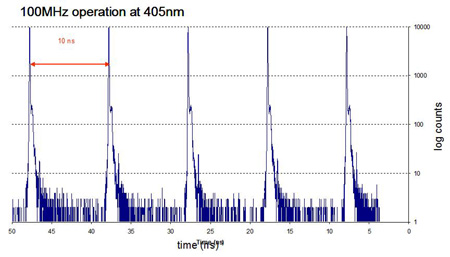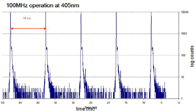 DD-405L operating at 100MHz with an optical pulse duration <55ps. After pulse is characteristic of MCP detector.