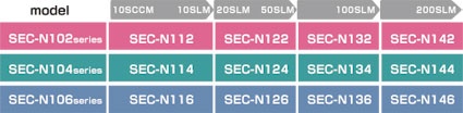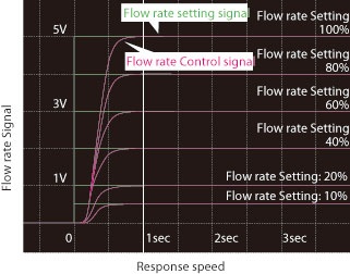 SEC-N100 series is installed with newly developed “Variable PID system”, which can achieve 1 second response to all setting points. Variable PID is continuously changing depending on setting flow points this allows the PID factor to be optimized when you change full scale flow and gas.