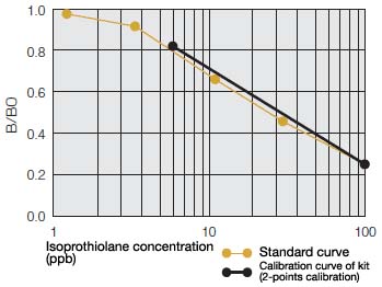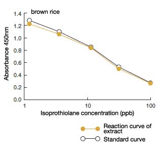 Isoprothiolane is one of fungicides for Blast disease and is also used as a dithiolane pesticide. It is used for cultivation of rice plant because of its effect to brown planthoppers. This kit allows an easy, rapid (within 2 hours), sensitive, quantitative, multi-sample analysis of isoprothiolane that remains in farm products. This kit is best applied for inspection at delivery time/prior to processing or primary screening in production sites.