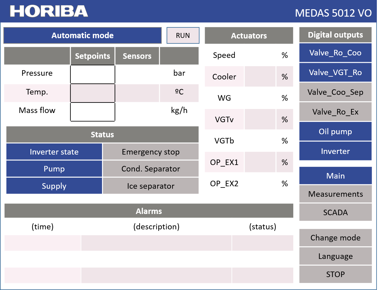 MEDAS main elements are well known in the automotive industry, globally available and easy maintenance. Everything controlled via standard interface automation or using the MEDAS interactive touch screen to select on-demand values and simulation monitoring as standalone unit as well.
