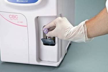 LC-661は、採血管のキャップをつけたまま、血液に触れることなく測定が可能。感染予防・検査の効率化に貢献します。