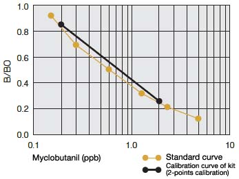 Myclobutanil is a Triazole fungicide and is used for multiple farm products. This kit allows an easy, rapid (within 2 hours), sensitive, quantitative,multi-sample analysis of myclobutanil that remains in farm products. This kit is best applied for inspection at delivery time/prior to processing or primary screening in production sites.