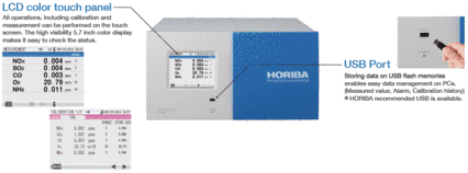 5 ppm High-Precision measurement (NOx, SO2 and CO) is available. - Others