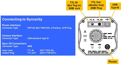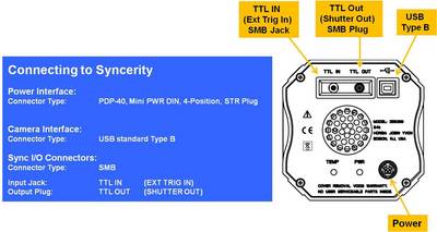Flexible Input & Output Trigger Interface | Experiment synchronization with External Trigger In & TTL Shutter Out with programmable edge triggering |
