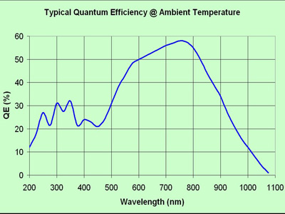 Quantum Efficiency at 20 °C (See QE curve below) | 27% at 250 nm - 31% at 300 nm - 43% at 550 nm |