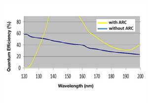 • High QE in VUV Range 58% @120 nm (no ARC)
