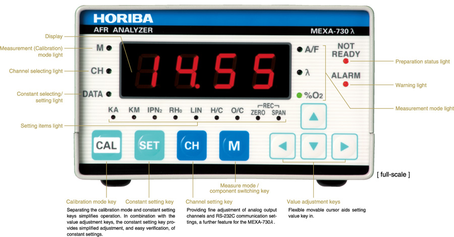 To meet the stringent measurement conditions of research and development, the on-board auto sensor is produced specifically for air-to-fuel evaluation. Each unit undergoes thorough inspection to guarantee accuracy. As a standard unit for air-to-fuel ratio measurement, the MEXA-730λ provides reliable accurate performance.