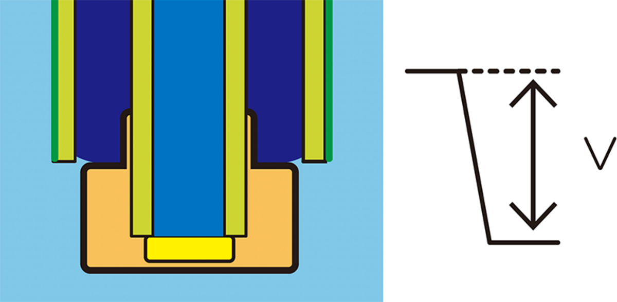 The internal solution in the reference electrodeis discharged to the sample solution or standard solution as a mechanism of  generating such a stable potential. The stable potential with almost no change, V≅0, can be generated by the diffusion of the outflow of the internal solution into the sample solution or standard solution.