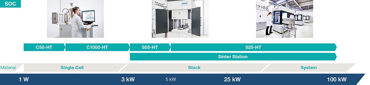 Evaluator HT 测试台是经过验证的解决方案,可满足客户长期研究、性能测试、系统认证和固体氧化物单电池、组件、电堆、热箱或完整系统的材料特性分析需求。产品线包括测试和诊断解决方案、SOFC 或 SOEC 测试台以及用于 SOFC 或 SOEC 电堆集成制造的烧结还原台。
