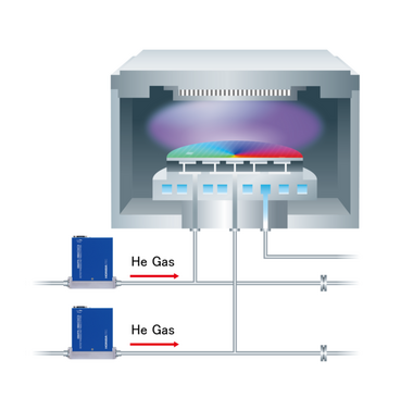 在半导体制造过程中,真空工艺中的晶圆温度控制会在晶圆背面注入微量的冷却气体,以增加热导率来加热和冷却晶圆。HORIBA 的 GR 系列氦背压控制器可安装在连接真空室的管道上,提供可靠和高度精确的冷却气体压力控制,这有助于准确管理晶圆的温度。