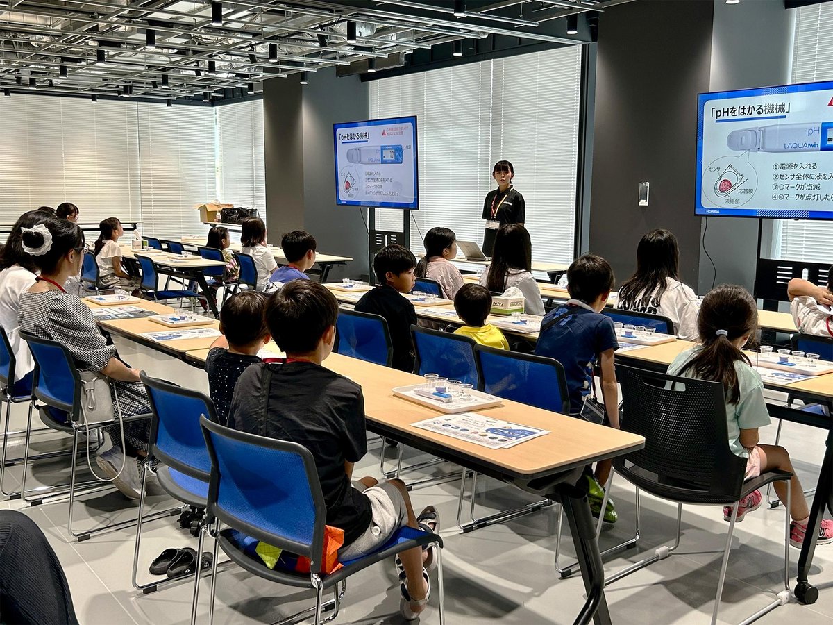 HORIBA Advanced Techno held a workshop for elementary and junior high school students attending the event, on Regenerative Medicine and pH Management. Through hands-on experience measuring the pH of purple cabbage, the children learned how measurement technology is useful in medical and research settings.