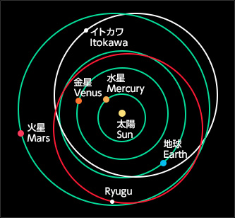 The orbits of Ryugu, Itokawa and the planets