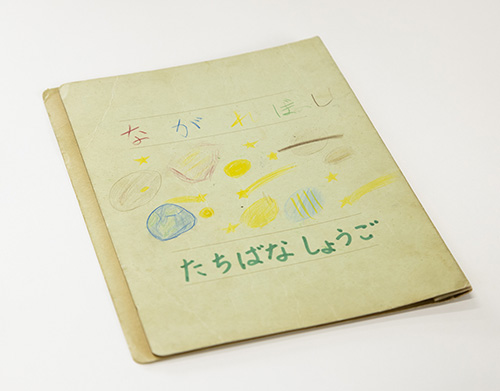 A folder on which Prof. Tachibana drew pictures of the solar system as an elementary school student.