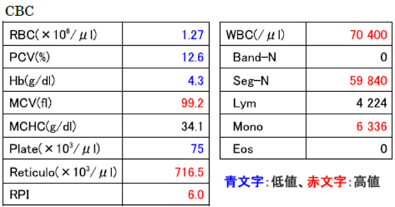 «評価» 重度の貧血,再生性貧血,血小板減少