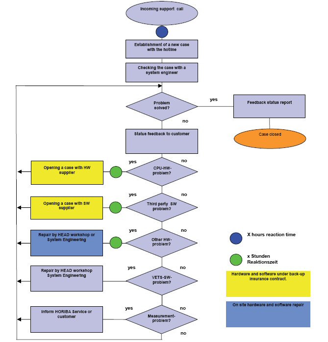 In addition to the failure diagnosis and correction a case management system has been integrated in the hotline process. Information paths and assignments for HORIBA internal divisions and third party vendors are organized here.