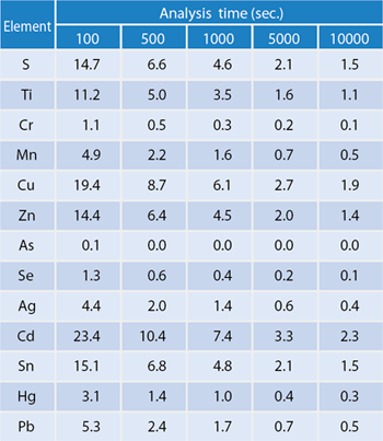 * For measurement of element concentration calibration by standard calibration materials is needed.