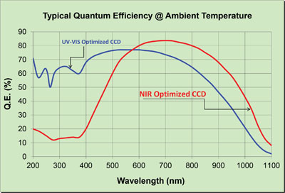 Back illuminated CCD Technology | Enhanced near infrared sensitivity QE 42% at 1000 nm. |