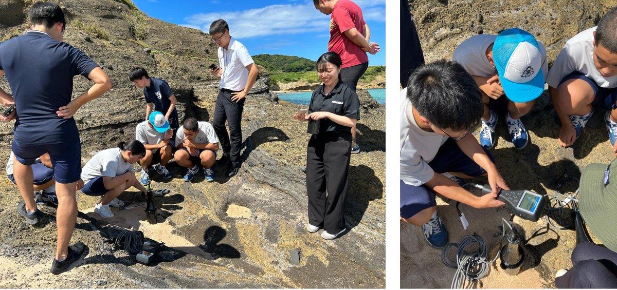 Wanting to help students and children get a hands on understanding of the importance of measuring, HORIBARIANs head out to various locations to offer hands-on classes using the theme, “learn by measuring”. This time, HORIBA Advanced Techno, on September 10 and 11, visited Nagasaki Prefectural Uku High School located on Ukujima, the northernmost island of the Goto Islands in Nagasaki Prefecture, and held hands-on classes . Ukujima is located about two hours by high-speed boat from Sasebo Port and with a population of about 1,800, is surrounded by the sea and rich in nature. Five students in grades nine and ten (out of nine students in the whole school) attended our seminar. Our theme was using the island's nature to make measurements. During the seminar students used HORIBA's U-52 Multi-parameter Water Quality Meter, LAQUAtwin pH Pocket Water Quality Meters, and the Microplastic Observation Kit "PlaWatch" to measure the water quality of familiar things such as seawater, food, and drinking water, and microplastics contained in sand on the beach. None of the students had ever touched an analyzer before, so they seemed a bit nervous at first, but when they actually started using them, they found that operating the equipment was easier than they expected and soon got used to it. By using their own eyes and hands to measure, the students learned the joy and fun of measuring and discovered that science is interesting.