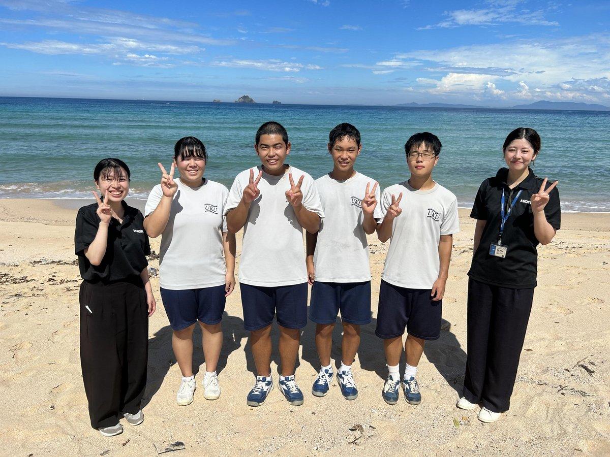 No microplastics were detected in the sand collected from the beach. Having said that, plastic bottles and plastic containers that had drifted out to sea from other areas had washed up on the island’s beach, making us think about the problem of ocean plastic.