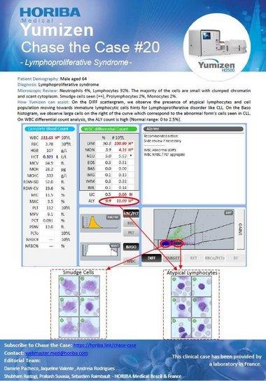The 20th issue of Chase the Case discusses a case of a male aged 64 with lymphoproliferative syndrome. See how the Yumizen H2500 hematology analyzer indicated the critical signs that assisted the diagnosis with its results.