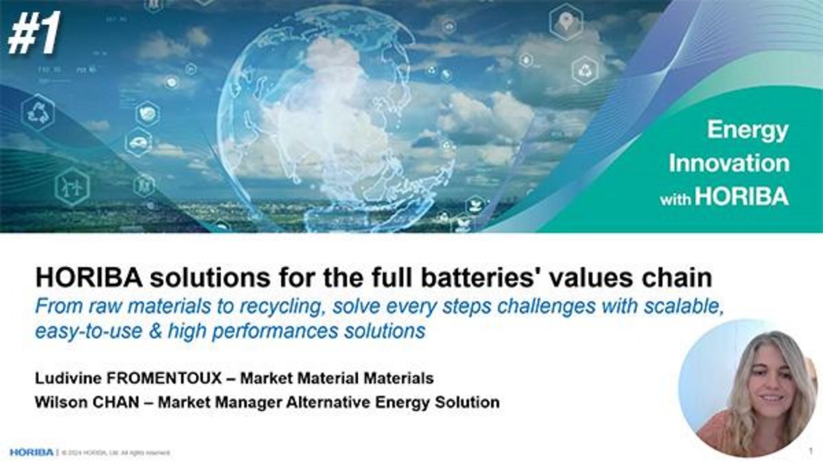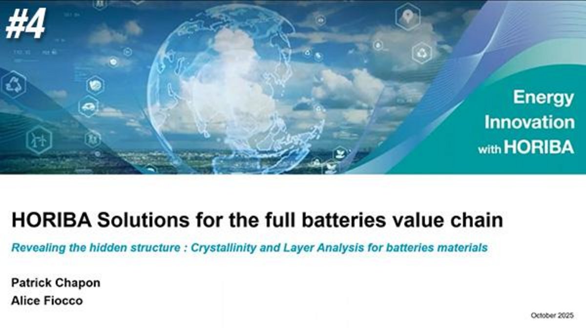 HORIBA offers a series of webinars exploring analytical solutions across the entire battery value chain, from materials characterization to cell testing and recycling.