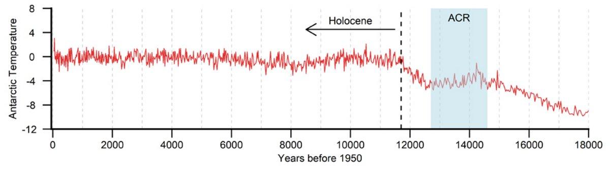 The Antarctica Cold Reversal counterintuitively involved a drop in Antarctic temperature at a time when the rest of the globe was warming. This period also saw a pause in the rise of atmospheric carbon in Antarctica, likely due to a proliferation of life in the parts of the Southern Ocean closest to Antarctica.