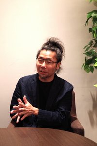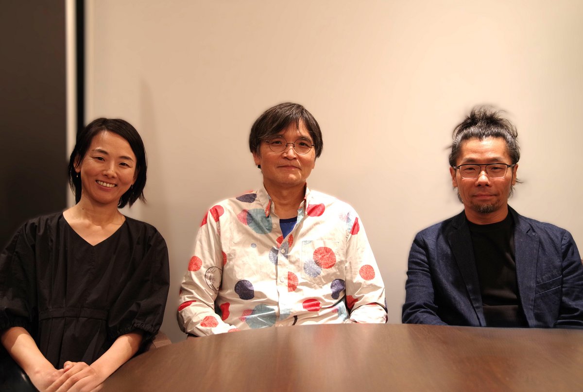 Architect and Exhibition Space Director Mr. Endo (center in photo), Project Manager Mr. Sumiyoshi (right), Interviewer: HORIBA’s Ueoka (left)