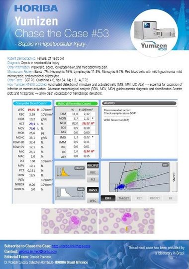 This month's clinical case features sepsis case in hepatocellular injury. Explore how Yumizen H1500 hematology analyzer supports the diagnosis with advanced hematology analysis.