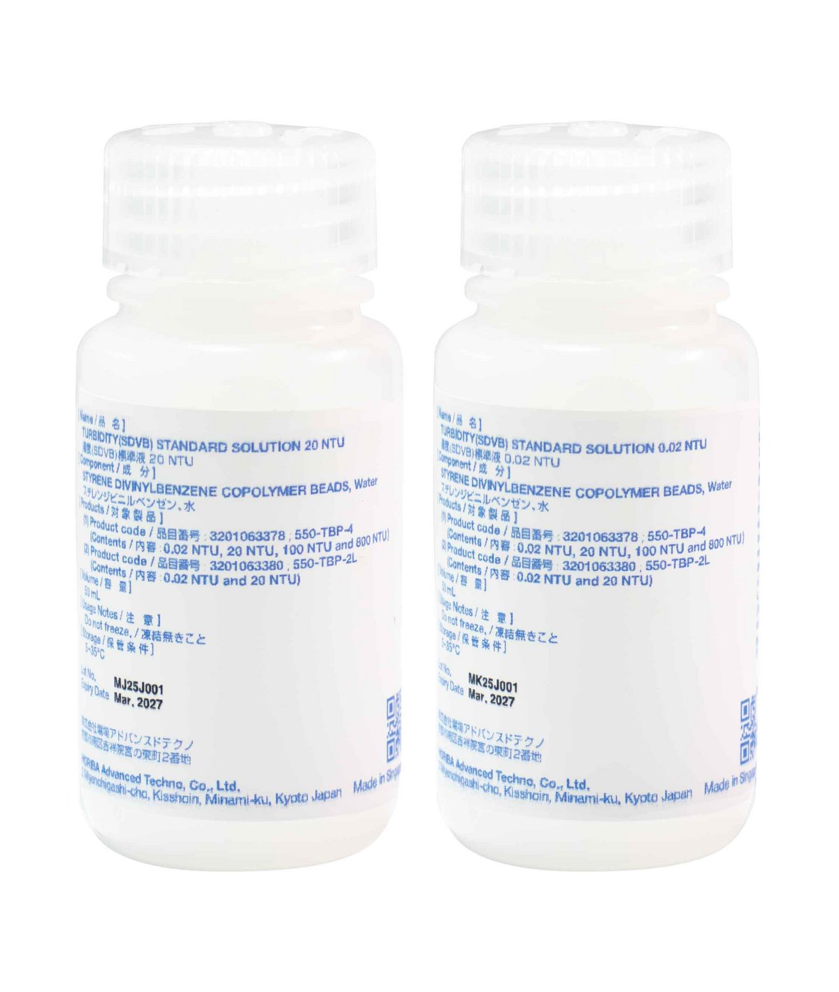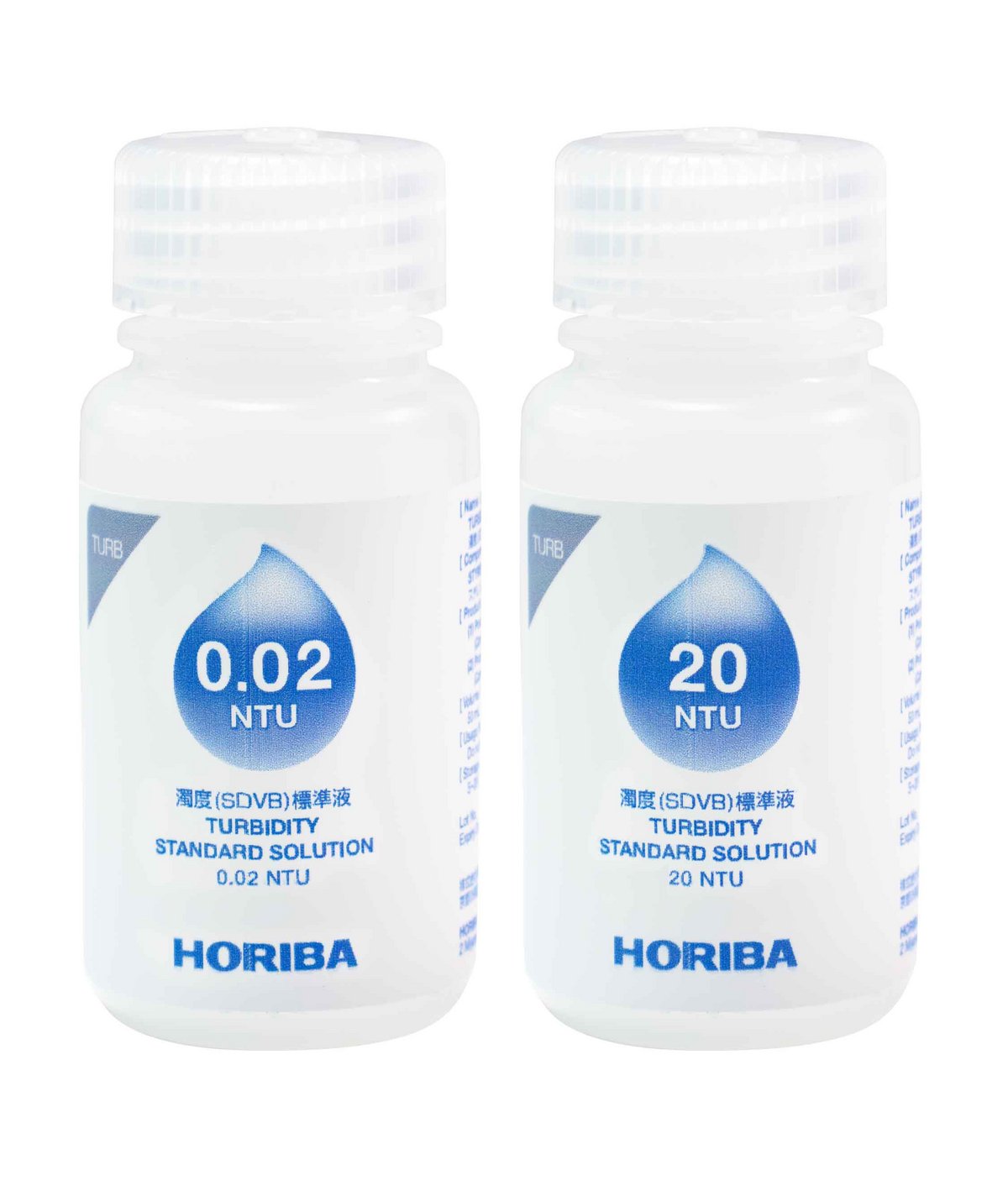 • Set of 2 turbidity standard solutions - 0.02 NTU and 20 NTU (50ml each)