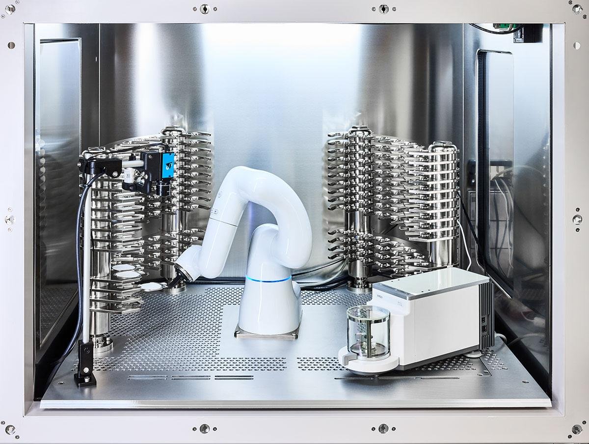 | Technology | METTLER TOLEDO XYZ rack with stepper motor | DENSO COBOTTA six-axis robot |