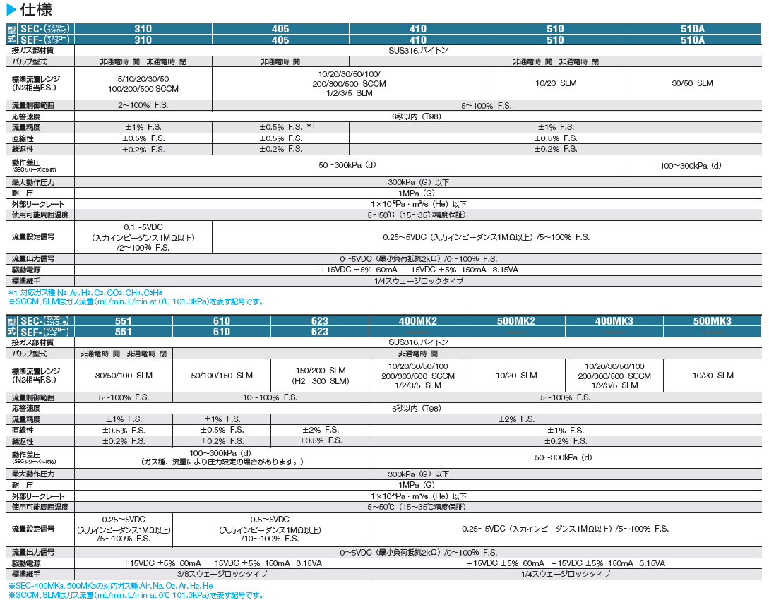 •  ±0.5F.S.に対応:SEC-405(ガス種限定)