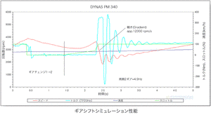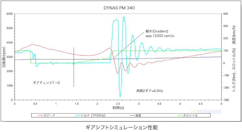 高性能DYNAS3 LIシリーズ交流動力計との比較試験でも、オープンクラッチシミュレーションやクランキングシミュレーションを含むゼロトルク制御、および、ギアシフトシミュレーションにおいて、優れた特性を示すことが実証されています。