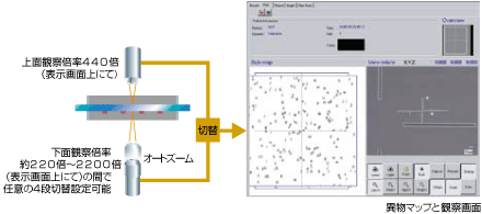 - 上下面異物観察機能を装備。(観察倍率多段切替)