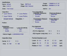 レティクルのサイズ、検査形状、検査エリア検査しきい値など多彩な検査条件を簡単に設定できます。バーコードリーダやRF-IDを使えば、レティクルに対応した検査レシピを選んで自動的に検査を開始します。
