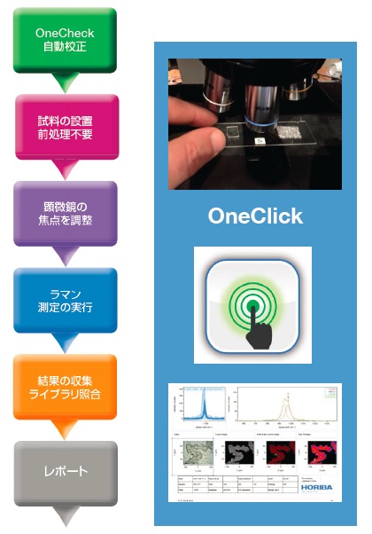 OneClick は、測定からデータ処理までを登録する機能です。使用時には、ワンクリックで測定、データ処理を行い、結果を表示できます。