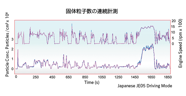 測定成分・ | 固体粒子状物質の粒子数 0–10000個/cm3~0–50000個/cm3 | |