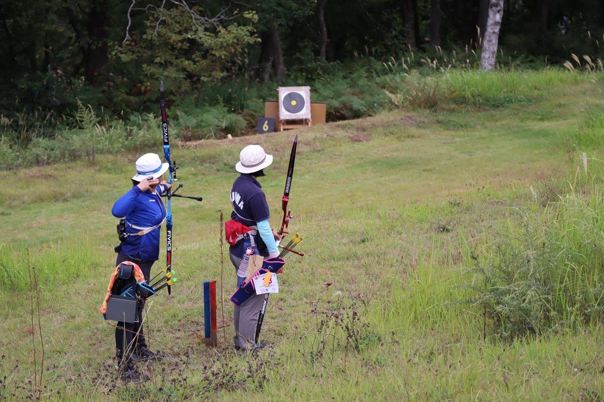 ※1 フィールドアーチェリー:山の中や草原など自然の地形を生かして標的を設置したコースを回って行射する競技。弓の形状によってリカーブ、コンパウンド、ベアボウの3部門がある。