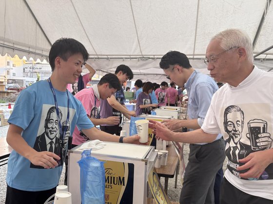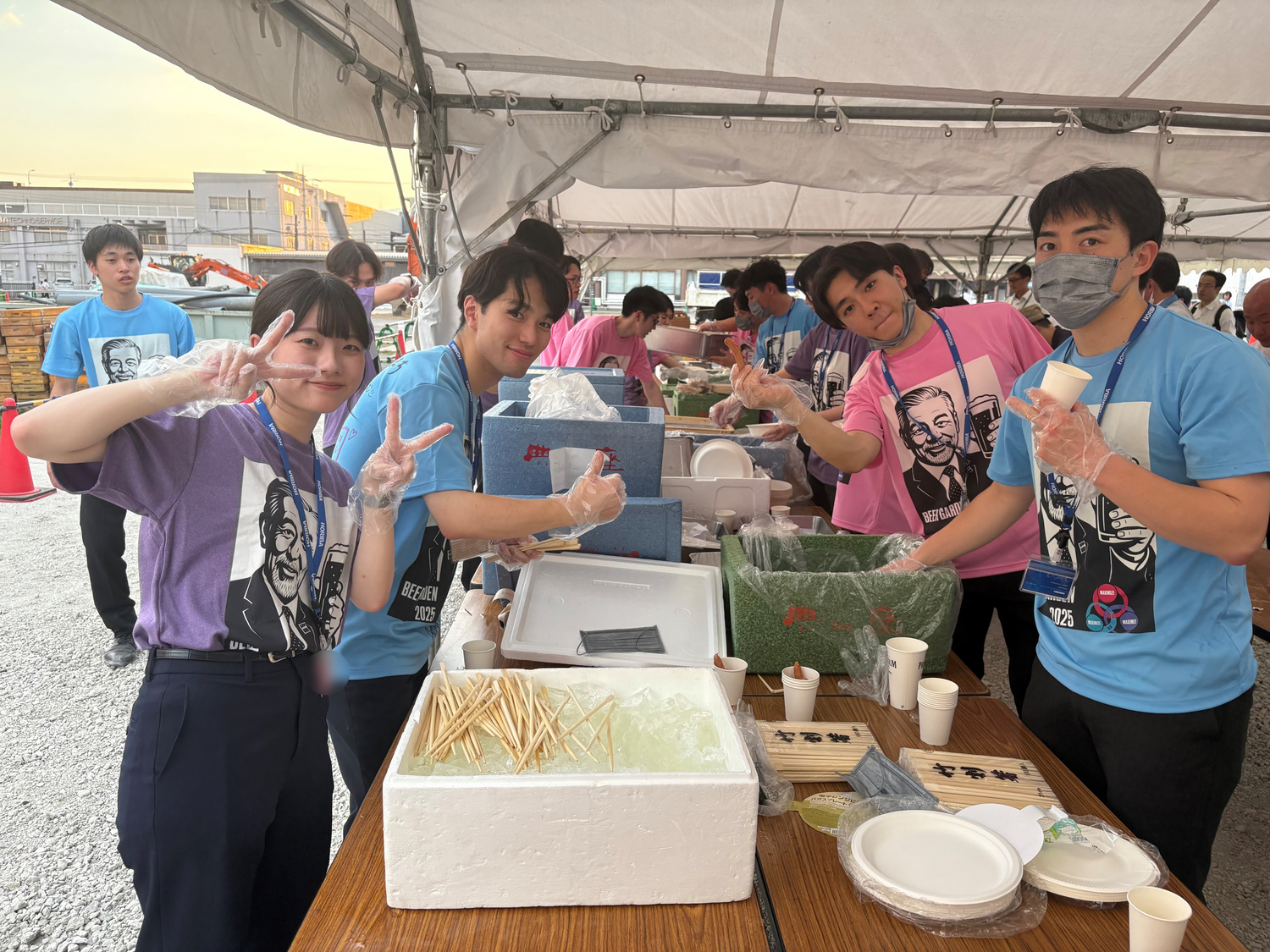 ビアガーデン当日、新入社員は3フィールドのテーマカラーにちなんだピンク・水色・紫の3色のTシャツを着用。鮮やかな色合いが会場を彩り、活発に動き回る新入社員たちの姿は、3フィールドの調和を象徴する光景となりました。