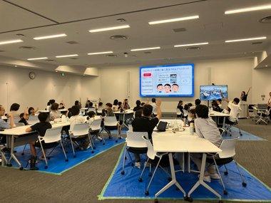 受付時刻になると、少し緊張した面持ちの子どもたちが続々と会場へ到着。子どもと参加する社員もお父さん、お母さんの顔に戻っています。まずはHORIBAがどんな会社なのかやマイクロプラスチックが及ぼす環境への悪影響など、クイズを交えながら説明し、これから行う観察体験のねらいを知ってもらいました。