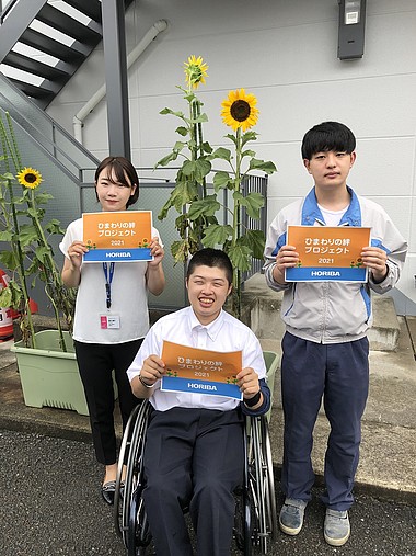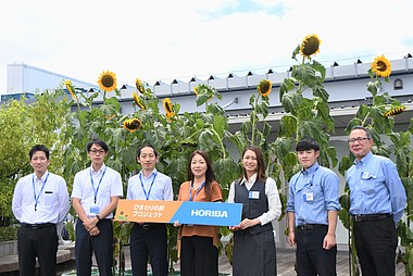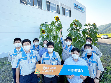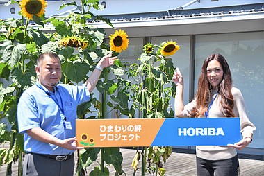 HORIBAもこのプロジェクトに賛同し、2017年に京都府南警察署長から贈られたひまわりの種を、国内各拠点の社員有志がそれぞれのオフィスや家庭で大事に育てています。今年も、昨年採取した種が全国各地で色鮮やかに大輪の花を咲かせました。
