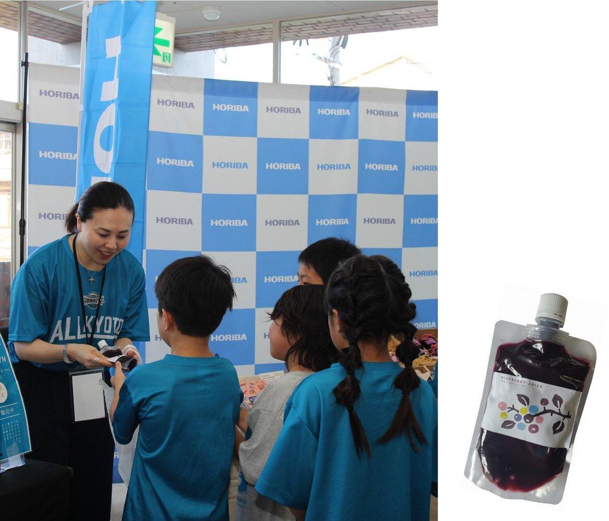 シュートチャレンジの参加者にHORIBAの自社農園で栽培したブルーベリーのジュースをお渡ししました。