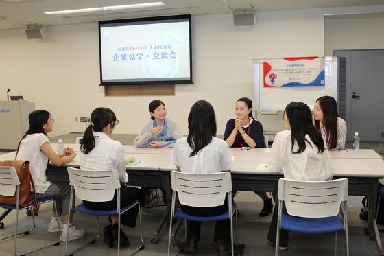 「京都STEAM女子応援事業」は、京都府文化生活部男女共同参画課が推進する、女子学生の理工系進路選択を応援する取り組みです。京都府内の企業や大学、行政機関等が「京都STEAM女子応援事業懇話会」の懇話会員として参加し、事業推進の支援に取り組んでいます。