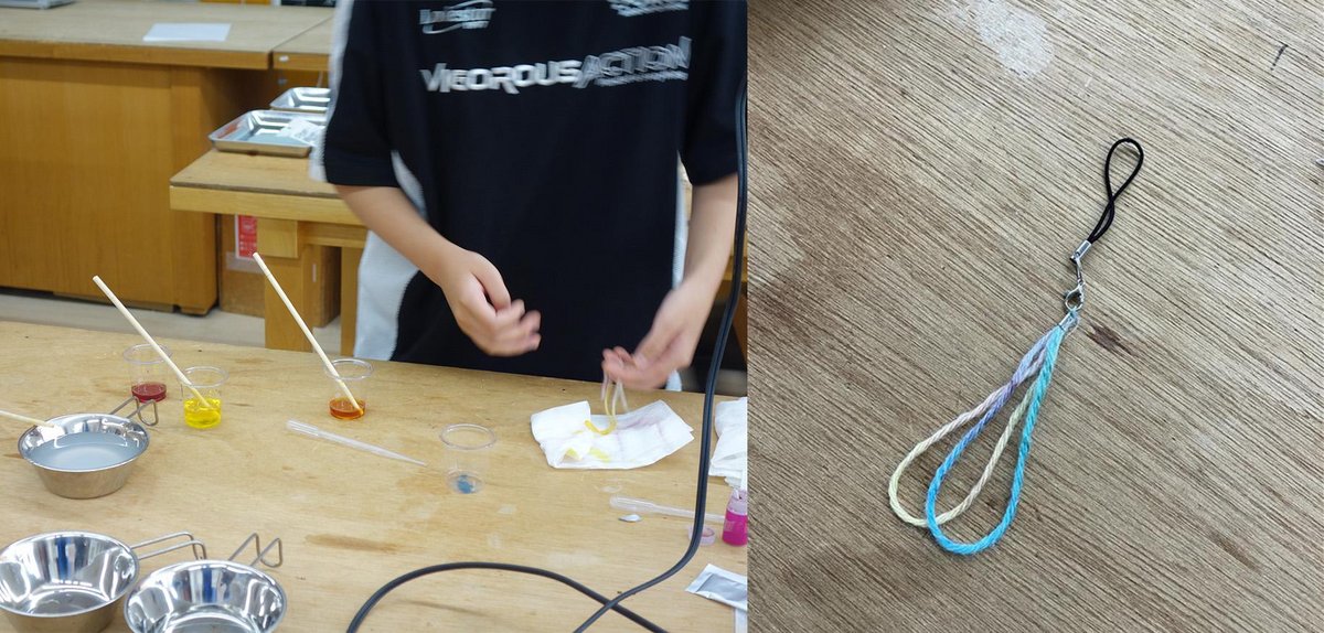 授業終了後、生徒からは、「授業で習ったことを活かせた」「pHで色が変わることに驚いた」、「実験結果がストラップという形になって嬉しかった」といった感想が寄せられ、実験が実生活につながる貴重な体験となりました。