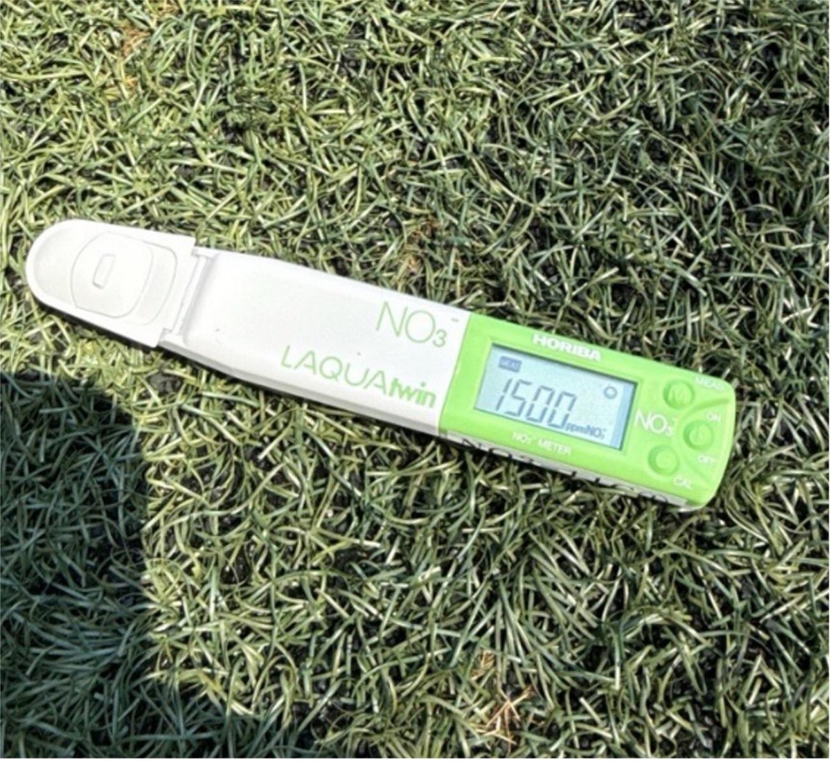 この限られた日照時間の中で芝生の強さと密度を確保するために、葉と茎部分には硝酸態窒素、リン酸、カリウム、マグネシウム、ナトリウム、カルシウムなどを適量吸収してほしいのですが、光合成量の少ない中での窒素は植物の生育に特に大きな影響を与えるため、土壌にはあまり残留してほしくありません。現状、年に一度土壌を外部分析していますが、芝生自体の栄養管理はできていないため、LAQUAtwinを活用できればと思っています。