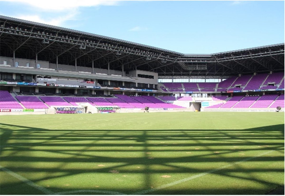 サンガスタジアムの芝生は季節によって夏芝と冬芝を使い分けていますが、3~6月は夏芝が萌芽しており、冬芝も生育の適期ということでハイブリッドになっている状態なので、強度もあって見た目もよくなります。