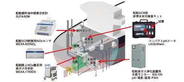 日本の発展と将来に国際輸送は不可欠であり,圧倒的な物量をほこる海上輸送はその重要な手段として発展し船種の大型化が進むと共に船舶排ガスによる大気汚染が注目されるようになっている。HORIBAは船舶分野における多くの分析計に携わり,現在,窒素酸化物(NOX)鑑定用排ガス分析計,選択触媒還元脱硝装置制御用NOXセンサ,燃料油中硫黄分析計,排ガス浄化装置用水質分析計,尿素水劣化検査キット等を船舶業界へ提供している。