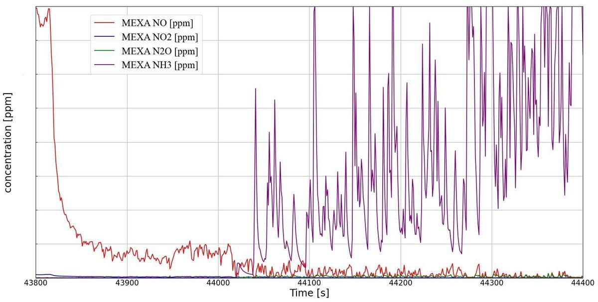 NOxとアンモニアの共存領域を排ガス分析装置MEXAで確認したデータ