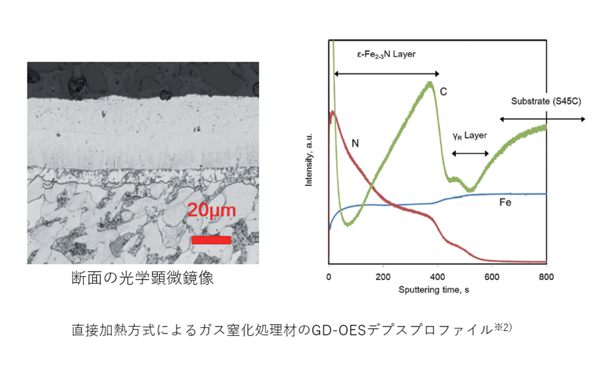 GDSでは、数μm~数十μmの深さの元素分布を短時間で測定できるため、数多くのサンプルを分析できることがメリットです。特に、熱処理による改質層は厚みがあり測定時間の短いGDSは重宝しています。また、パルス・スパッタリングという方法を用いることによりスパッタリング速度をコントロールすることが可能です。これによって、比較的薄い膜でも精密に分析できています。