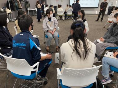グループに分かれての質問・交流の時間には、中高生から「理科は好きだけど数学や英語が苦手で理系の学部に行けるか不安。苦手な教科をどのように勉強していましたか」「理系の大学生活は文系と比べて大変ですか」「会社ではどのくらい実験をしていますか」「これからの時代に絶対に必要なスキルは何ですか」など、さまざまな質問が飛び交っていました。